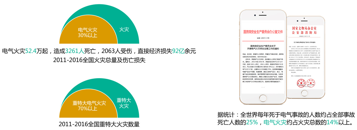 "電當(dāng)家—智慧式用電安全隱患監(jiān)管服務(wù)系統(tǒng)"是指通過物聯(lián)網(wǎng)技術(shù)對引發(fā)電氣火災(zāi)的主要因素(導(dǎo)線溫度、電流和漏電流等)進行不間斷的數(shù)據(jù)跟蹤與統(tǒng)計分析,實時發(fā)現(xiàn)電氣線路和用電設(shè)備存在的安全隱患(如線纜溫度異常、過載、短路、接地、三相不平衡、過壓、接觸不良及漏電流越限等),結(jié)合智能測控終端的邊緣計算與云平臺大數(shù)據(jù)綜合診斷分析,及時借助WEB、APP、短信、電話等隨時隨地向安全管理人員推送預(yù)警信息,指導(dǎo)其開展隱患治理,達到消除潛在的電氣火災(zāi)危險,實現(xiàn)"防患于未然"的目的。